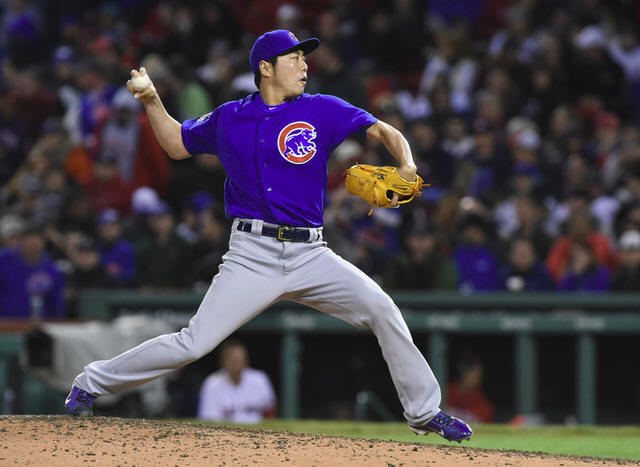 Cubs relief pitcher Koji Uehara (19) pitches during the eighth