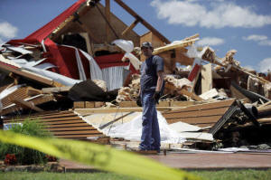 sustained major tornado damage, in Canton, Texas, April 30, 2017.