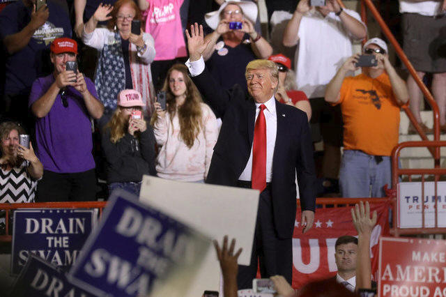 President Donald Trump appears on stage at a rally in Harrisburg,