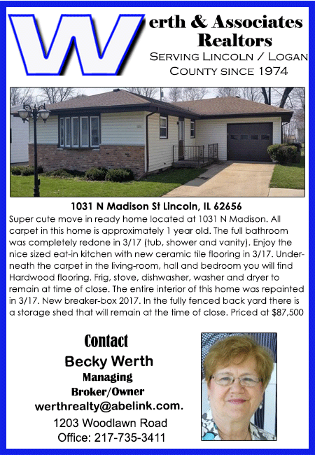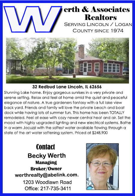 All real estate advertised in the Lincoln Daily News is subject to the Fair Housing Act for 1968 which makes it illegal to advertised "any preference, limitation, or discrimination based on race, color, religion, sex or national origin, or intention to make special preference, limitations, or discrimination."