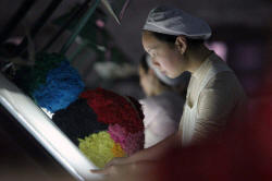 A woman works at a textile factory in Xiangfan, Hubei province,
