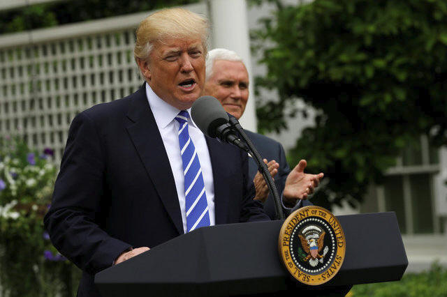 President Donald Trump (L), flanked by Vice President Mike Pence,