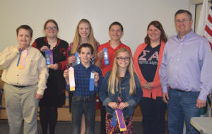 Front L to R: Daniel Crider, Stephen Starasta, Aidyn Barber and judge Chad Colby.  Back row:  Daniel Crider, Hannah Crider, Molly Schempp (Overall Winner), Cavit Schempp, and Judge Liz Fanning.