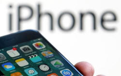 An Apple iPhone 7 and the company logo are seen in this illustration