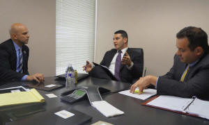 Florida Representative Rene Plasencia (L), discusses efforts to
