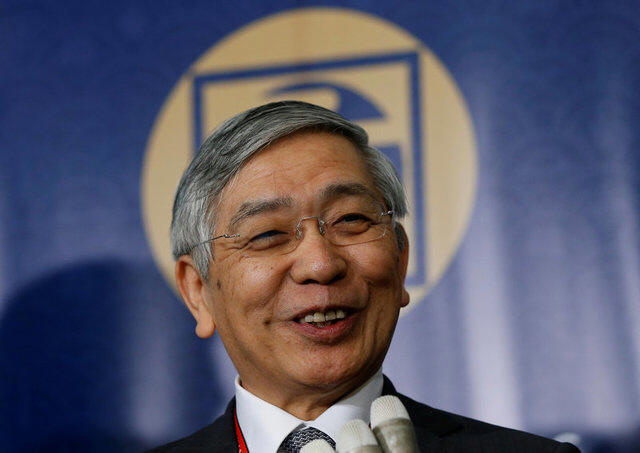 Bank of Japan Governor Haruhiko Kuroda speaks to media at the Asian