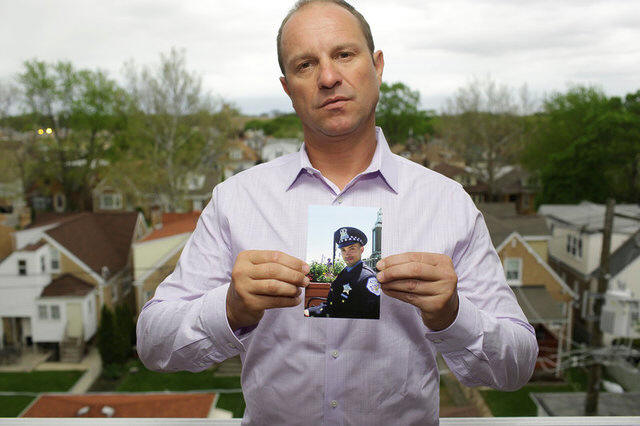 Ark Maciaszek poses with a photo of his cousin, former Chicago