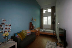 His en-suite room is around 25 square meters. It fits a double-sized bed