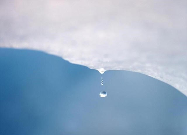 A drop of water falls from a melting piece of ice on Argentina's
