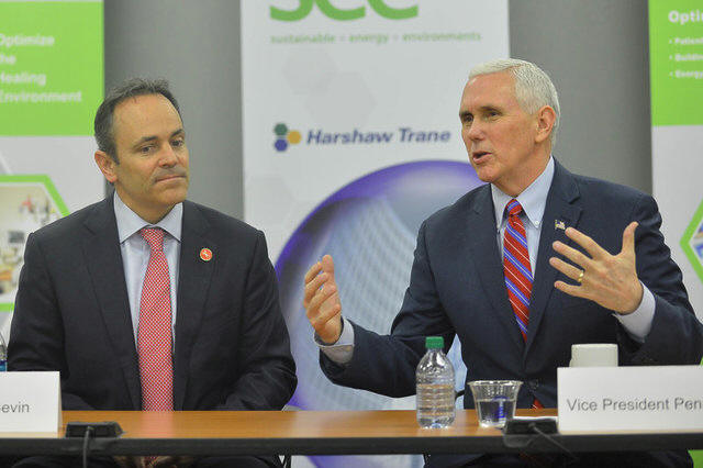 Vice President Mike Pence, sitting with Kentucky Governor Matt Bevin