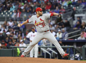 Cardinals starting pitcher Lance Lynn (31) delivers a pitch to an