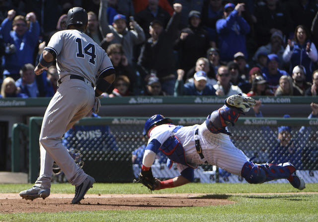 The Cubs prevented a Yankees' tying run in the second when Headley