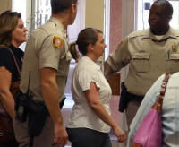 Tulsa police officer Betty Shelby (2nd R) arrives for her