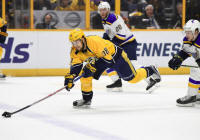 Predators left wing Viktor Arvidsson (38) skates the puck into