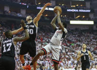 Spurs guard Manu Ginobili (20) defends during the first quarter