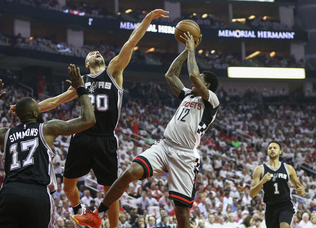 Rockets guard Lou Williams (12) shoots the ball as San Antonio