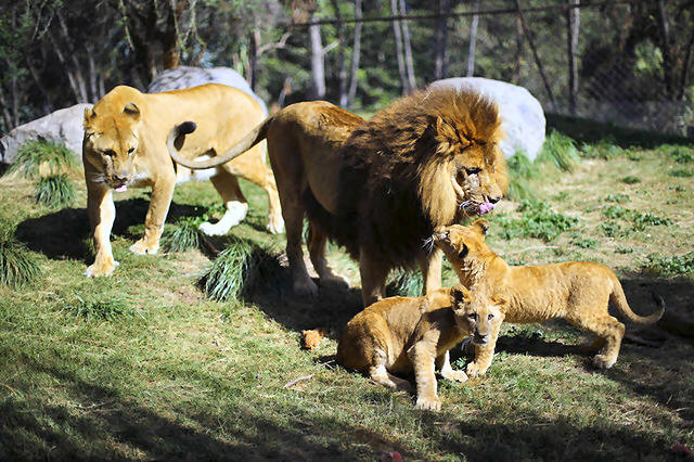 Lion cubs, who were born after a pioneering veterinary procedure that