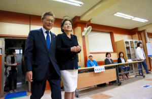 cast their ballot at a junior high school in Seoul, South Korea, 09