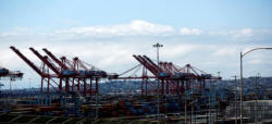 Hanjin Shipping Co shipping containers are seen at the Port of Long