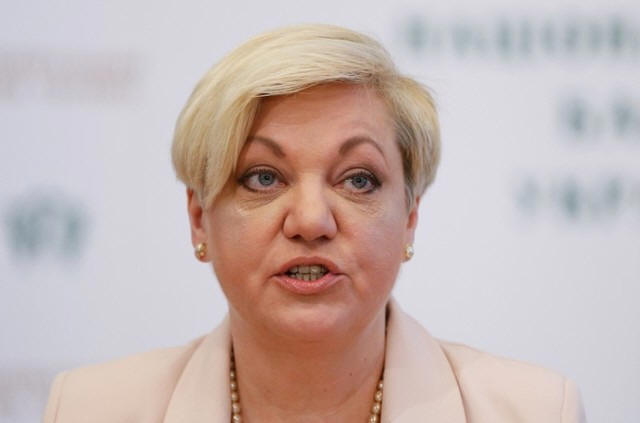 Ukraine's Central Bank Governor Valeria Gontareva attends a news