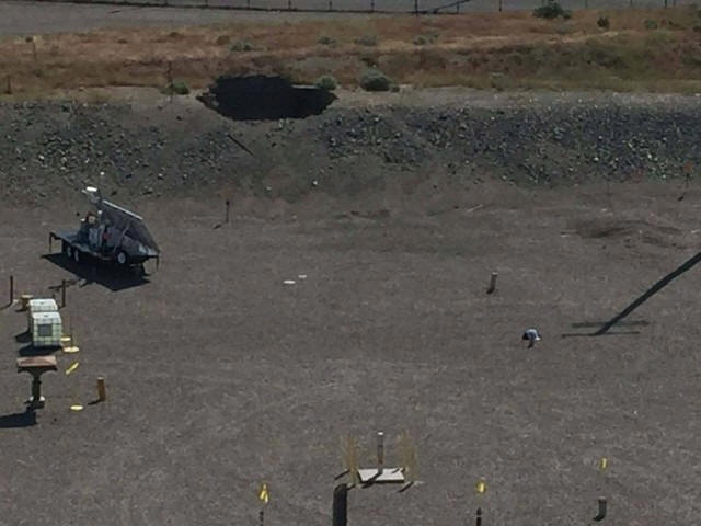 A 20-foot wide hole over a decommissioned plutonium-handling rail