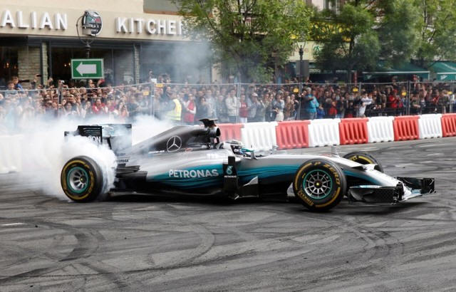 driver Valtteri Bottas of Finland drives during an exhibition race.