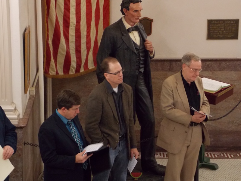 gathered in the rotunda of the Logan County Courthouse to observe
