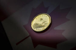 A Canadian dollar coin, commonly known as the "Loonie", is pictured