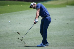 Dustin Johnson hits out of the third fairway during the final round