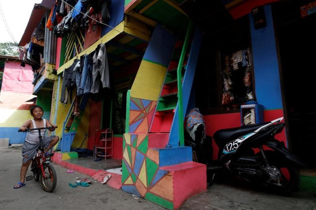 Tanggul neighborhood were painted with bright colors in March, with
