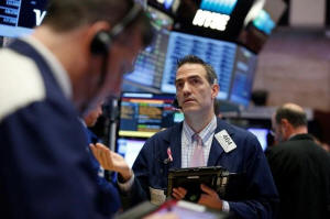 Traders work on the floor of the New York Stock Exchange (NYSE) in