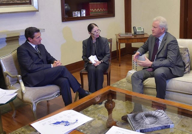 Mexico's President Enrique Pena Nieto speaks with Jeffrey R. Immelt,