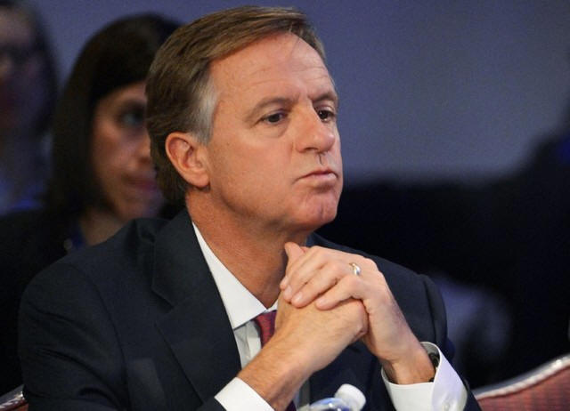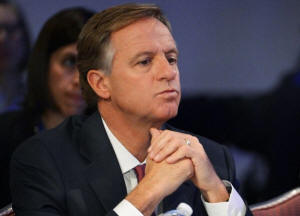 Tennessee Republican Governor Bill Haslam listens during the