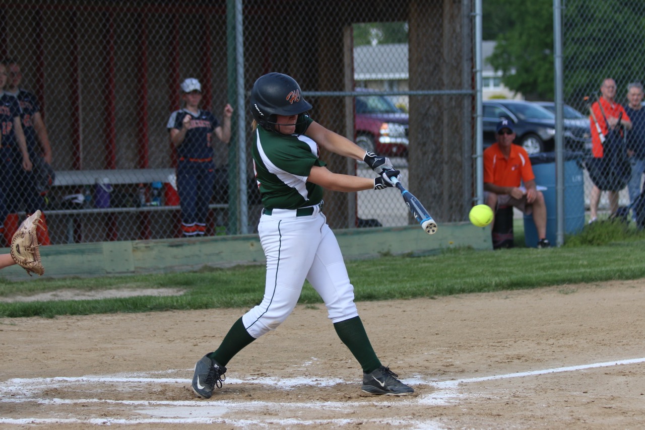 right - [May 9, 2017 - Kiersten Osborne, Lincoln, pounds out a base hit