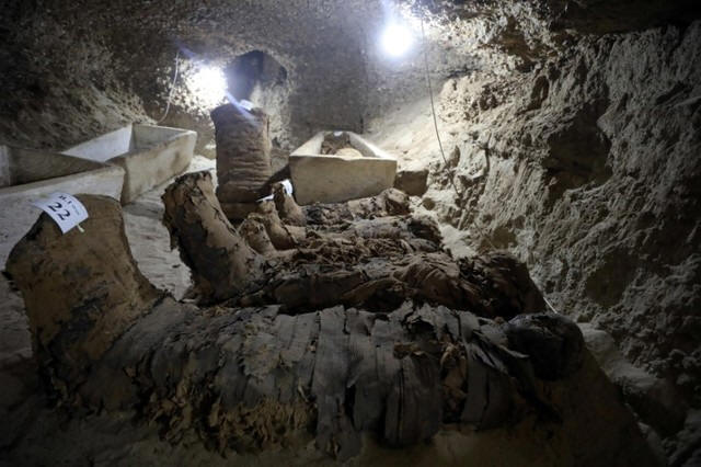 A number of mummies inside the newly discovered burial site in