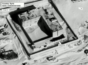 A satellite view of part of the Sednaya prison complex near Damascus,