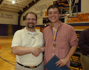 Lucas Aylesworth was named Senior of the Year sponsored by Illinois National Bank at the 2017 Mount Pulaski High School Honors Night. Aylesworth received many awards and scholarships on the evening.