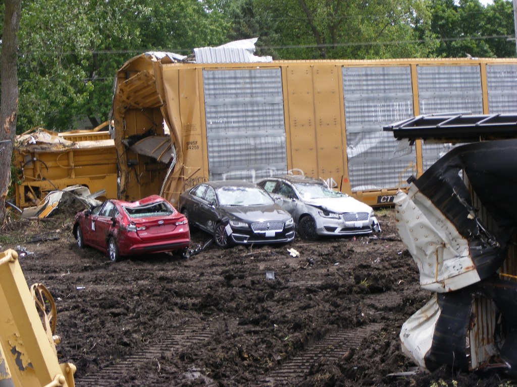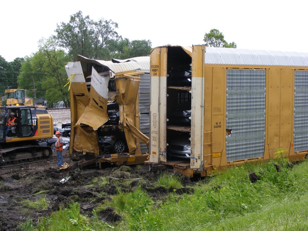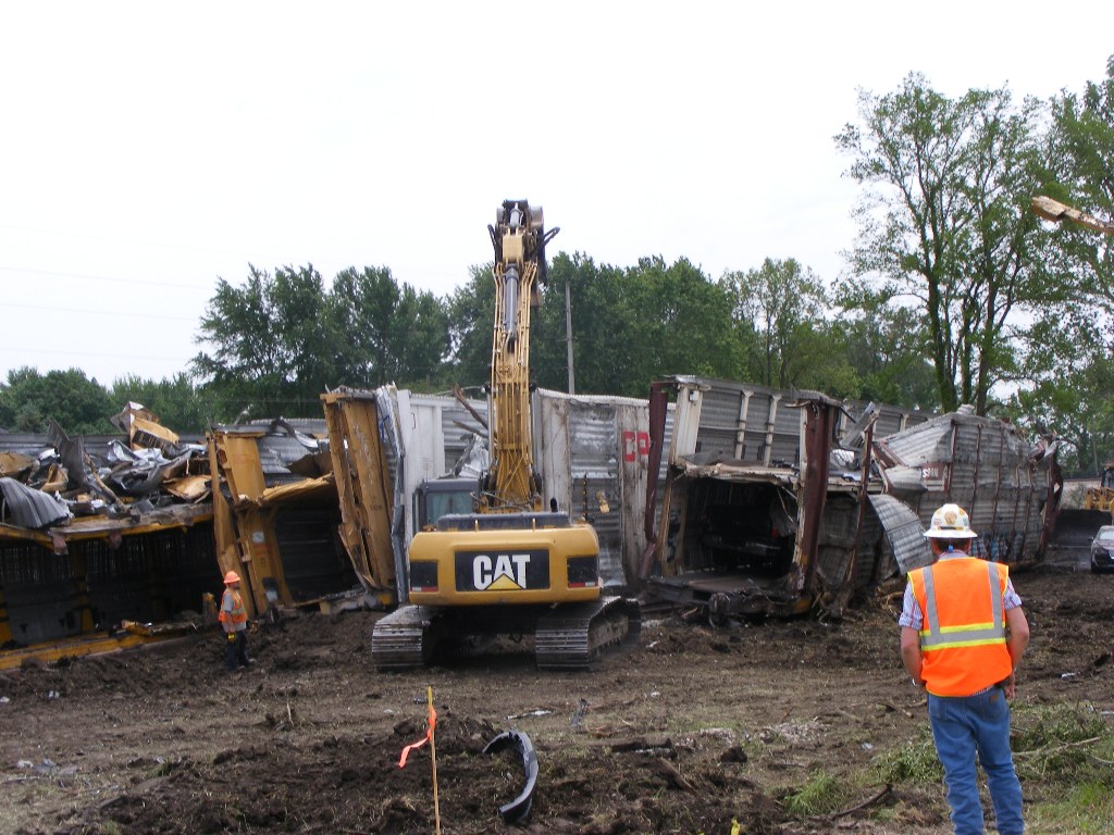 railcars was also apparent, as workers loaded new, expensive wrecked