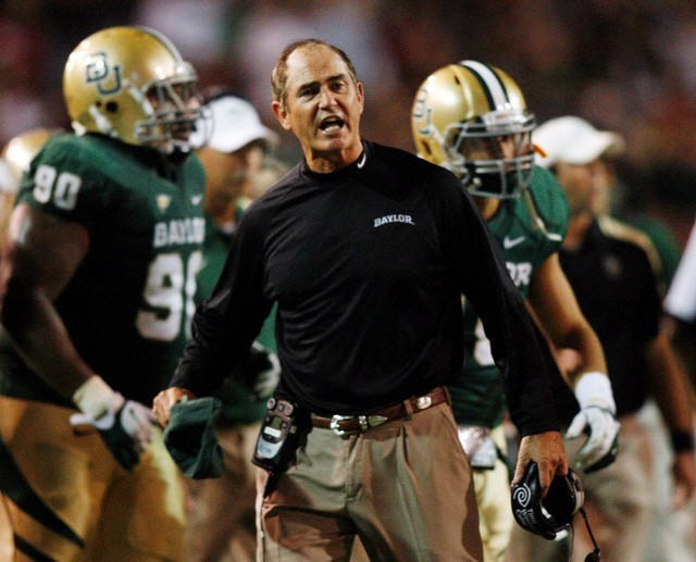 Baylor University head coach Art Briles reacts against the
