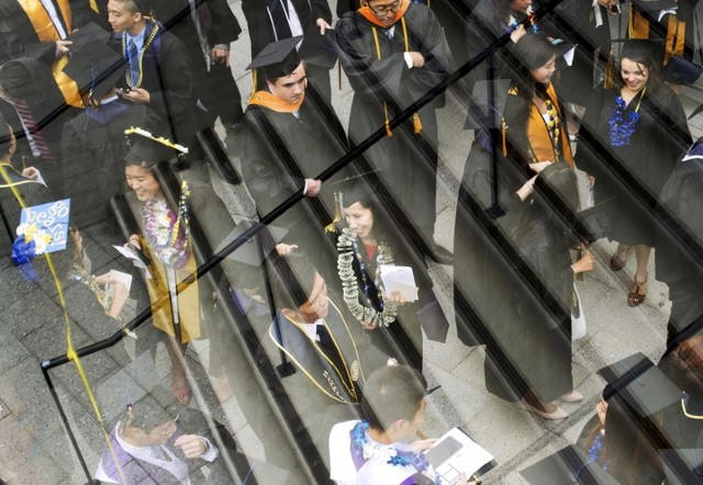Graduates arrive for commencement at the University of California,