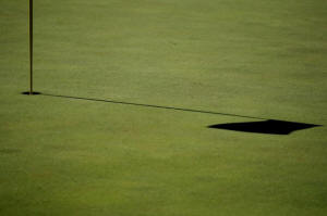 The pin on the 6th hole casts a shadow across the green in Augusta,
