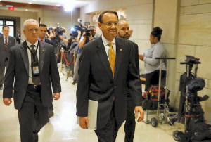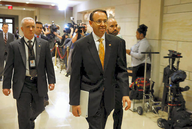 Deputy Attorney General Rod Rosenstein arrives for a closed briefing