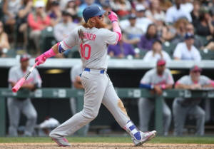 Miami Marlins on Thursday when rounding the bases in the seventh