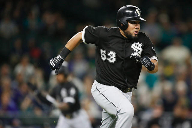 White Sox left fielder Melky Cabrera (53) races up the first base