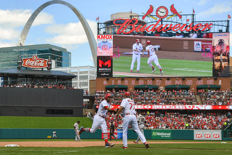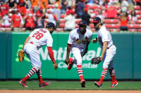 Cardinals center fielder Dexter Fowler (25) celebrates with left