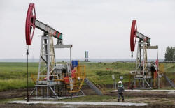 Pump jacks pump oil at an oil field Buzovyazovskoye owned by