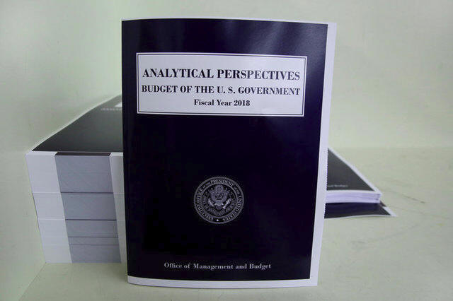 President Donald Trump's FY2018 budget is seen printed at the