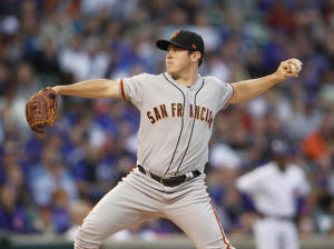 The San Francisco Giants right-hander caught Zobrist looking at a