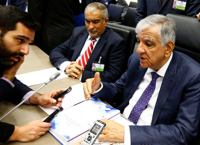 Iraq's Oil Minister Jabar Ali al-Luaibi talks to journalists before
