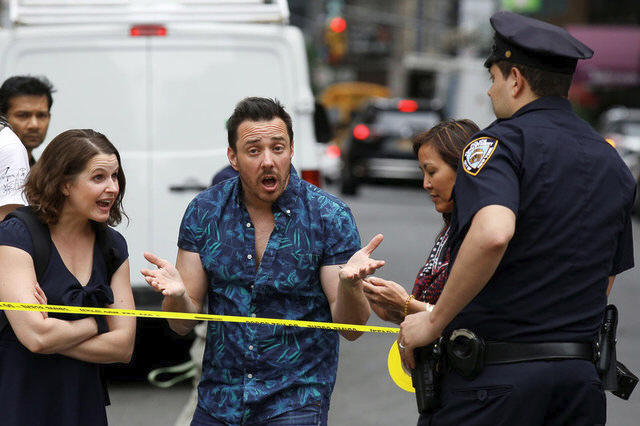 his car onto a crowded sidewalk in Times Square in the heart of